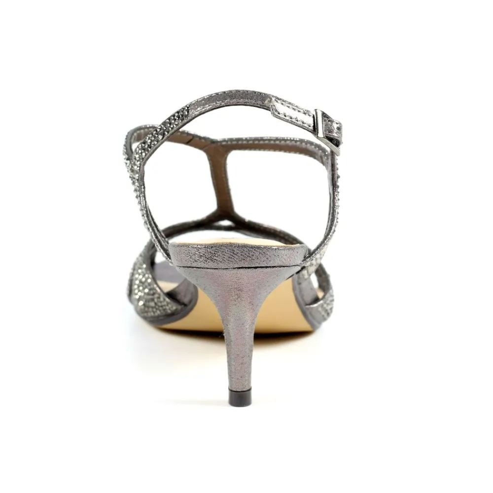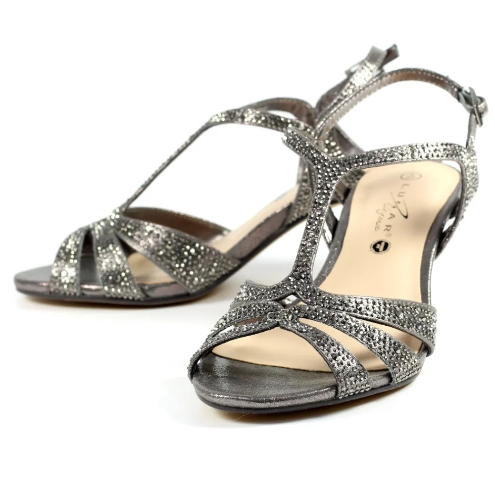 Présentation de la sandale à pierres précieuses à coupe large Francie – où le glamour rencontre le confort. Sa tige en similicuir métallisé est ornée de lanières éblouissantes incrustées de pierres précieuses, ajoutant une touche d’opulence à votre look. Avec une coupe large, ces sandales offrent style et facilité, faisant de chaque pas une déclaration de sophistication et d’élégance.